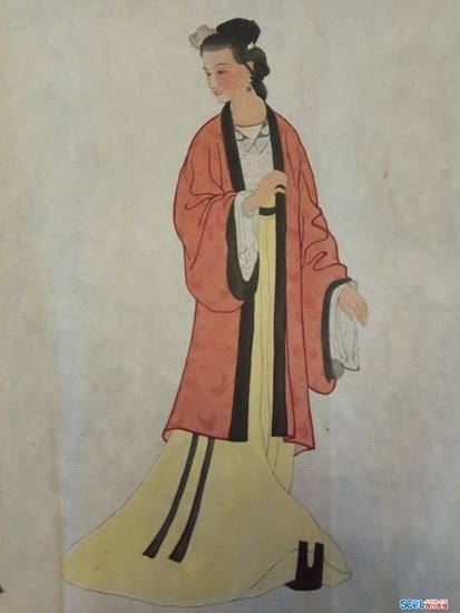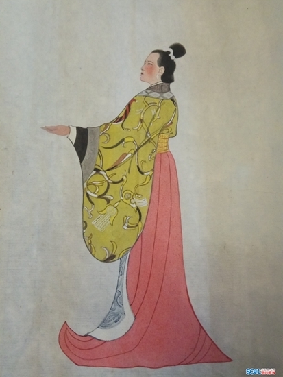 第一幅手稿只是简单地勾勒了人物线条,第二幅色彩稿需为人物加上服饰、发型、饰品。“每一位才女的服饰、发型都很讲究,必须与当时的文化相符。”这些都需史料佐证,陈锡邦先后到国家博物馆、南充丝绸厂等地进行考察,为200位才女“穿衣化妆”。
